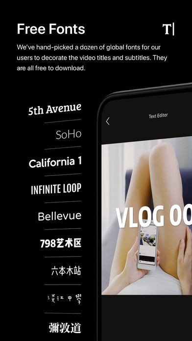 * Free Fonts: We’ve hand-picked a dozen of global fonts for our users to decorate the video titles and subtitles. They are all free to download;
