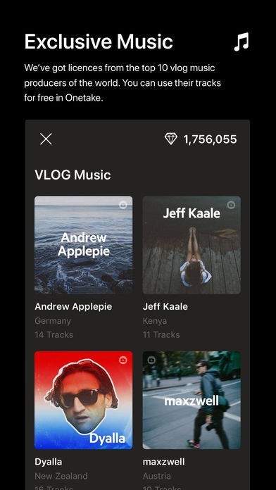 * Exclusive Music: We’ve got licences from the top 10 vlog music producers of the world. You can use their tracks for free in Onetake;