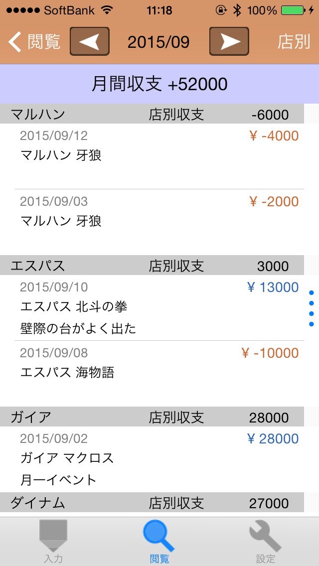 収支の閲覧も、総合的な収支を確認するだけでなく『機種別収支』『店舗別収支』などといった違った角度からも収支を確認できます。