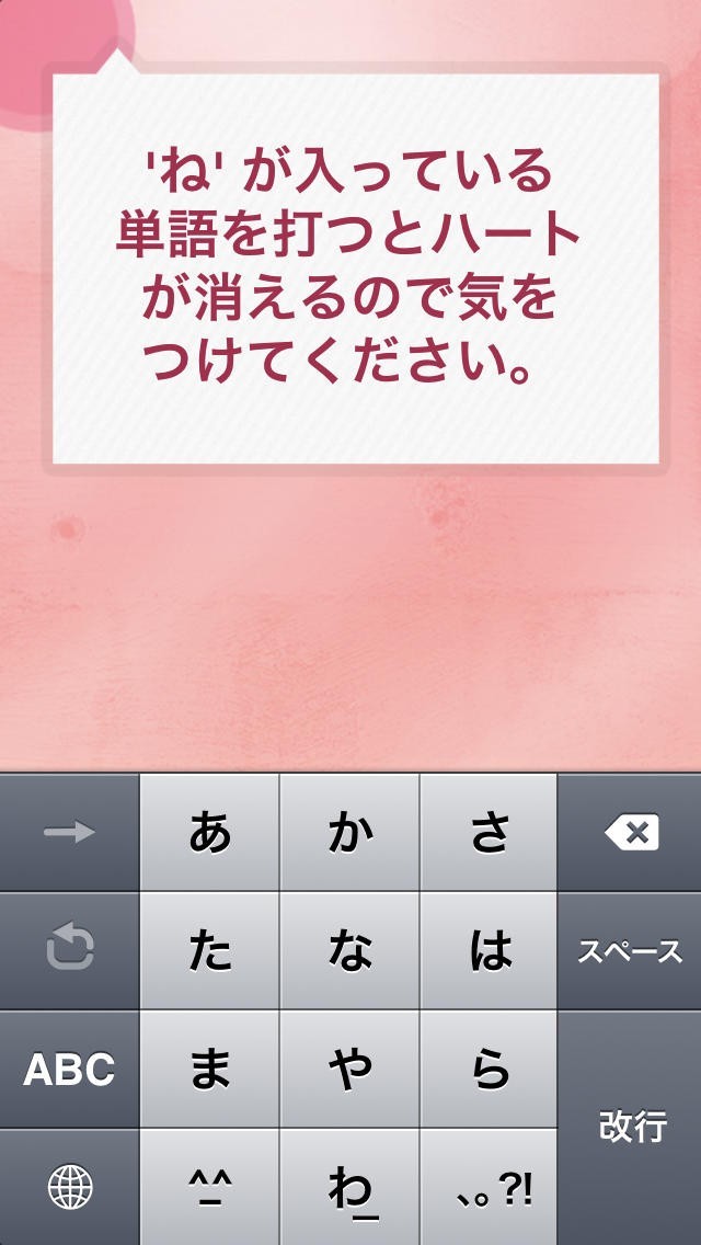 「フリックの嵐 -地獄-」はスマートフォンでのテキスト入力をスムーズに行うためには必須ともいえるフリック入力の練習を楽しみながら練習することが出来るゲームアプリです。画面の上部から流れてくるひらがなの単語をフリック操作を駆使して素早く入力していくだけのシンプルなゲームとなっていますが、最初に指定されているNGワードを間違えて入力してしまうと3つあるハートのうちの一つが消えてしまい、3つすべてが消えてしまうとゲームオーバーになってしまうので緊張感を持ちながらフリック操作の練習をすることが出来るようになっています。素早くたくさんの単語を入力することで高得点を狙うことが出来ます。