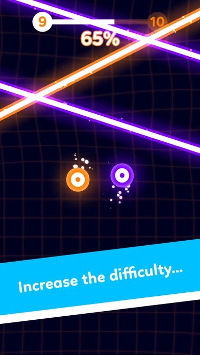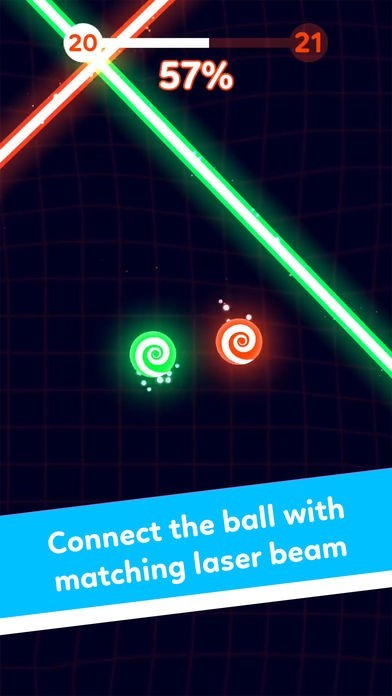 2色のレーザーが画面の上下からランダムで流れてきます。あなたは2色のボールを操作して、レーザーと同じ色のボールをレーザーに当てることで消滅させることができます。レーザーとカラフルなボールの共演が新感覚で楽しいゲームです。