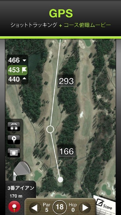 衛星写真や動画でコースの中身がわかります。世界各地のコースに対応しており、リクエストすれば新しいコースも登録してくれる。プレイ中はGPSで自分や他のプレーヤーの位置がわかります。