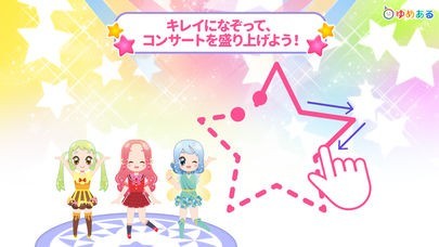 アイドルの歌と共に線を指でなぞり形を完成する知育ゲーム、シールブックや着せ替え機能搭載で、可愛い物が好きな女の子に最適