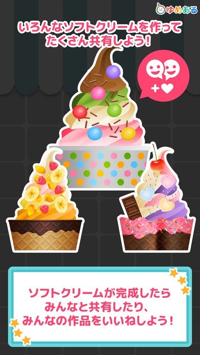 スマートフォンで親子で楽しくソフトクリーム屋さんごっこが楽しめる