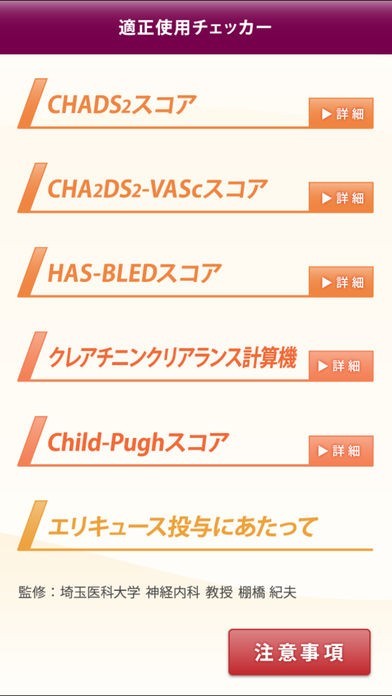 App Storeより引用当アプリは出血リスク、脳卒中発生リスク、肝機能、クレアチニンクリアランスやeGFRといった腎機能を評価することができる医療従事者向けのアプリです。ブリストル・マイヤーズ スクイブ株式会社が提供しています。