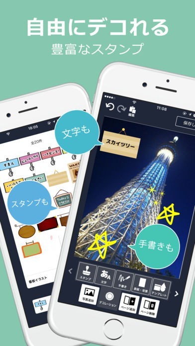 スタンプを貼ったり自分好みにかわいくアレンジできるアルバム作成アプリ