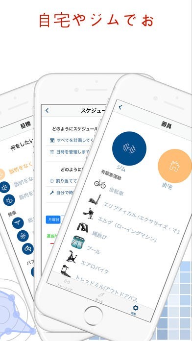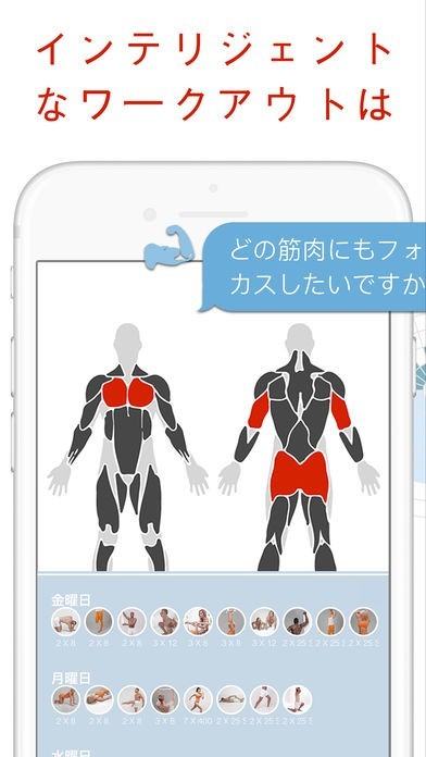 あなたが利用可能なトレーニングマシンから的確なメニューを提示し、食事面でも必要な栄養素も教えてくれるマルチなトレーニングアプリです。これなら長続きしなかったあなたも成功体験が得られるでしょう。