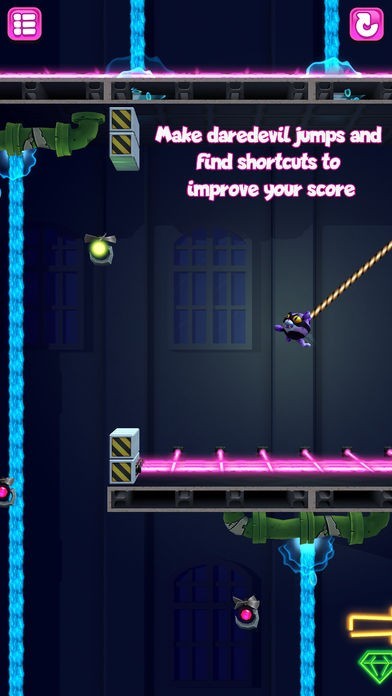 App Storeより引用Are you ready to become a master cat burglar—literally? In this thrilling one-touch action game, you’ll sneak, swing, dodge, bounce, and soar through mesmerizing levels filled with diabolical traps and gravity-defying physics on your way to the purrrfect heist. Don’t get catnapping—you’ll need to think quick if you’re going to swipe the gem without getting busted.