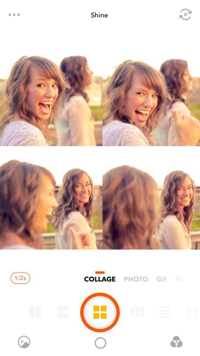 撮影モードはコラージュ・写真・GIF・ビデオの4モード