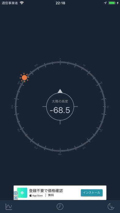 太陽の位置はアウトドアで即座に知りたい時に役に立ちます。表示が速いので即座に知りたい時に最高です。