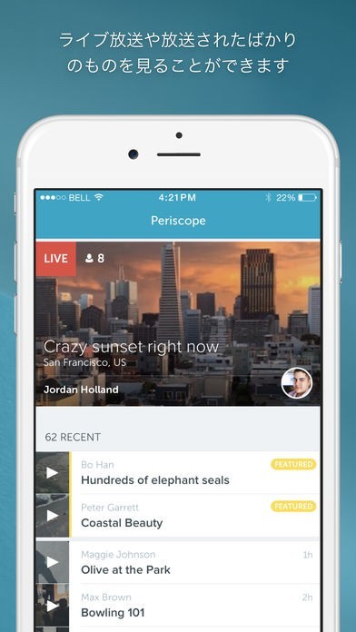 「Periscope」は気軽にライブ放送をすることができたり、或いはしている人を見ることができるアプリになります。 ライブ放送によって世界中の情報をリアルタイムで見たり、同好の士と繋がることもできます。 Twitterなどのソーシャルネットワークサービスとのシェアも可能であり、自分のフォロワーのみとライブ放送をしたりすることもできるのです。 場所やトピックからライブ放送の検索もできるのでポイントで探すこともできるようになっています。