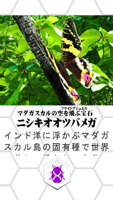 世界中の巨大な昆虫を紹介している図鑑アプリです。写真だけでなく3DCGでも昆虫を見ることができるので、自由に見る角度を変えることが可能で、昆虫の隅から隅まで知ることができます。昆虫を実寸大で表示することもできるので、その大きさを実感できます。 地球を回していくとその地域に生息している昆虫が次々に表示されるので、昆虫の生息地を視覚的に認識できて勉強になります。昆虫の説明文の漢字には読み仮名も付いているので、小さな子供でも一緒に楽しめます。
