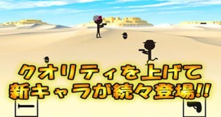 弾を撃っては避けて撃っては避けてのシンプルなシューティングゲームです。主人公は棒人間、敵が撃ってきた弾に当たらないように避けつつ、こちらからも攻撃を仕掛けて倒していくというわかりやすいルールです。画面をタップすることで移動することができ、ピストルマークがついたアイコンをタップすると弾を撃つことができます。操作できるキャラクターは3人います。それぞれに異なったのうりょくを持っているので、自分に合ったキャラクターを選択出来ます。