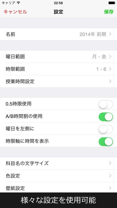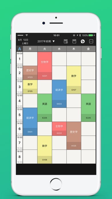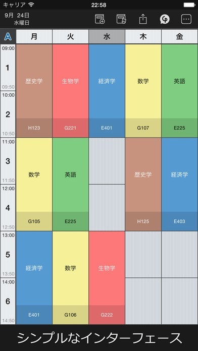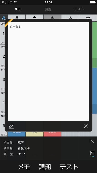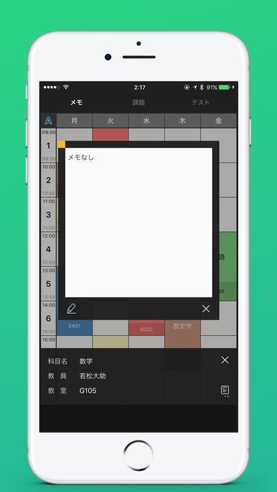 科目や講師名、教室の設定、講義毎のメモ入力など多彩な機能を搭載、スマホでハンディなスケジュール管理をしたい学生に最適