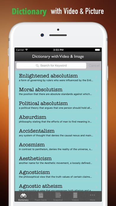 *私たちは、最も一般的な哲学の用語集と用語を集めました。 あなたが名前に困惑しているところでは、Appはあなたの強力な辞書ツールです。