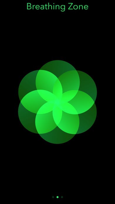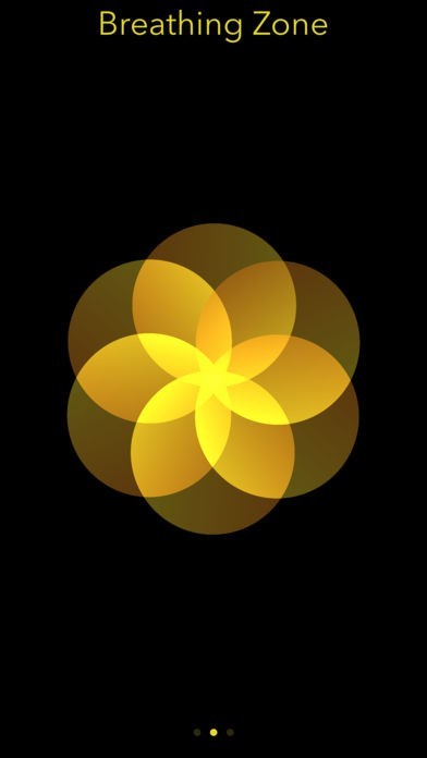 ゆっくりと膨らんだり萎んだりするカラーアートが呼吸すべきペースを示してくれます。カラーマップに合わせて呼吸を行い、下に表示されたタイマー機能を見ながらあとどれくらい継続すべきなのかを瞬時にチャックすることができます。