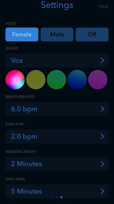 パニック発作を持っている場合に恐怖な呼吸困難。そんなときにでもセルフコントロールできるよう支援してくれる呼吸管理ツールとなっています。設定では男性、女性向けに切り替えることができます。