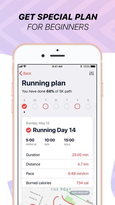 ペース配分、場所、距離などを記録し進歩が明確。走り方のオーディオサポートつきでダイエットも可能