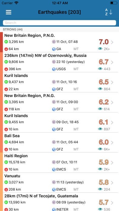 地震の情報をリアルタイムで把握できるのでありがたいアプリです