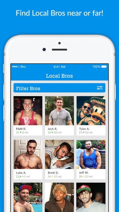 App Storeより引用Bro App(BRO)は、友人や日付のための新しい「ソーシャルアプリケーション」です。 BROは、他の人と会うことに興味がある男性のためのものです。それは簡単です。サインアップし、新しいBrosを見つけよう!