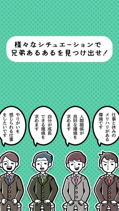 すべての操作はタップするだけなので誰でも簡単に気軽に遊べます。毎日の通勤や通学の移動時間に最適です。また、みんなで集まって遊べば兄弟のあるある内容は盛り上がること間違いなしです。