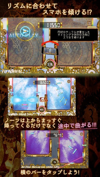 iPhone本体を傾けたりする独特の操作のリズムゲームを楽しめる!