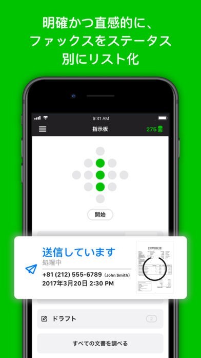 iPhoneからFAX送信が可能です。いつでもどこでもできて助かります。