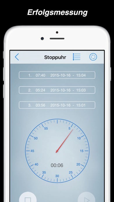 ストップウォッチ機能では暫定の時間を計測できるだけでなく、設定した残り時間を数えてくれます。呼吸をしない時間を計ることに使用した場合、過去の記録が長い順に表示されます。
