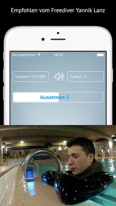 アプリのプログラムでは、まずダイビングやシュノーケリングを始める前に、ヨガの呼吸法を行うことで横隔膜を強化すると同時に心身をリラックスさせるところから始めてくれます。
