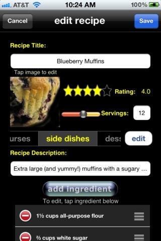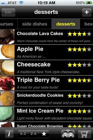 自分の気に入ったレシピは、アルファベット順またはレーティング順に表示することができます。また、レシピはいつでも追加・変更が出来、サービングなどのカスタマイズも自由にえます。
