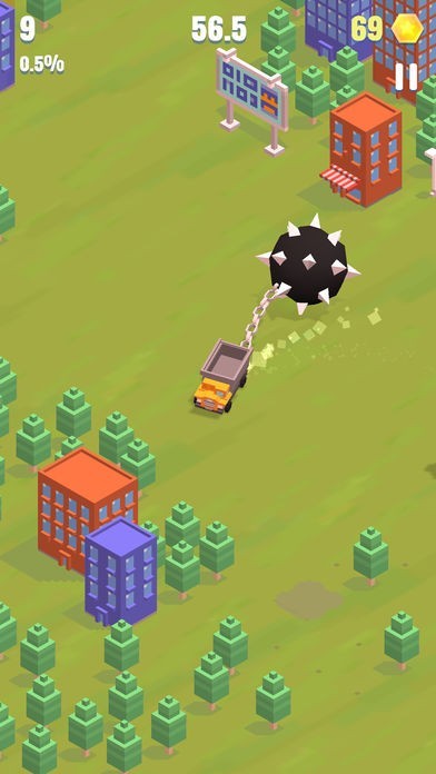 鉄球付きの車を操り、建造物を破壊していくレーシングゲーム「Flail Rider」 左右をタップすることで車の進行方向の制御し、たくさんのビルを壊してハイスコアを目指しましょう。 1ステージ60秒が基本となり、車に付属する鉄球を上手に操作することが高得点へのポイント。 3つのカテゴリーに分かれた50台の車を収録しており、それぞれの車種によって操作性も異なります。 オンラインランキング機能も充実。とっておきのハイスコアで、世界のプレイヤーと競い合えるようになっています。