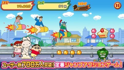 隙間時間でしんちゃんとお菓子集めを楽しめるアクションアプリです!4人で遊ぶこともできるので盛り上がります!