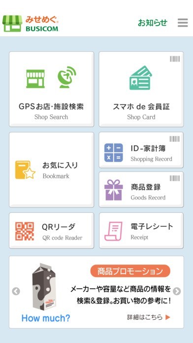 「みせめぐ」を持っていると会員証の変わりの役割をしてくれることから、わざわざお財布に無駄なカードを入れておく必要がなくなり、お財布をスッキリと整理することが出来ます。 また、「Shop-info」によって、バーゲン情報やクーポンをもらうことが出来るので、お得にお店を利用するきっかけをあたえてくれます。 また、「電子レシート」機能ではレシートをスマートフォンで管理できるようにしてくれるので、なくしてしまったりかさばったりといったことが無くなります。 ほかにもお店を赤いピンなどで地図上に表示してくれることから、お店に行く際に迷わずにすみます。