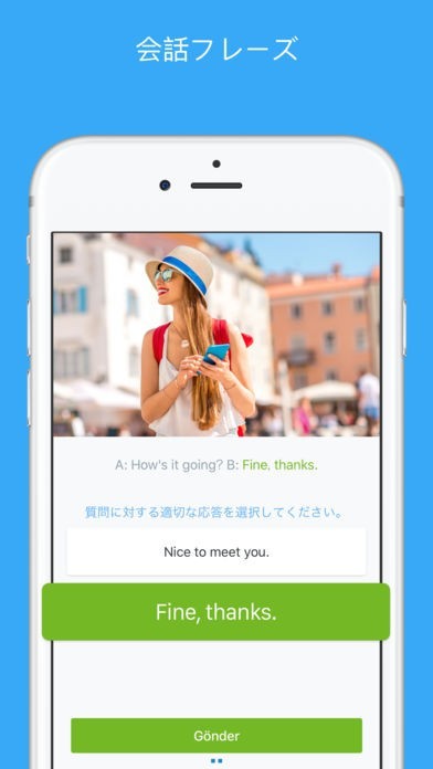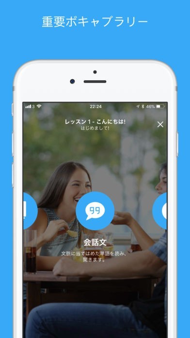 色々なシチュエーションに対応したレッスンに取り組むことができます。ある程度進めるとテストを受けることができるので、自分が本当に理解しているかどうか手軽に確認できます。