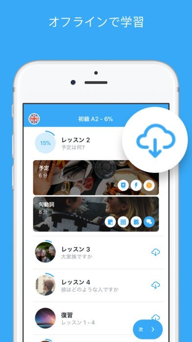最大 12 ヶ国語の主要言語を学習できて、なおかつ無料で試せるので始めました。 オフライン学習もできてネット環境がない時も学べて助かります。