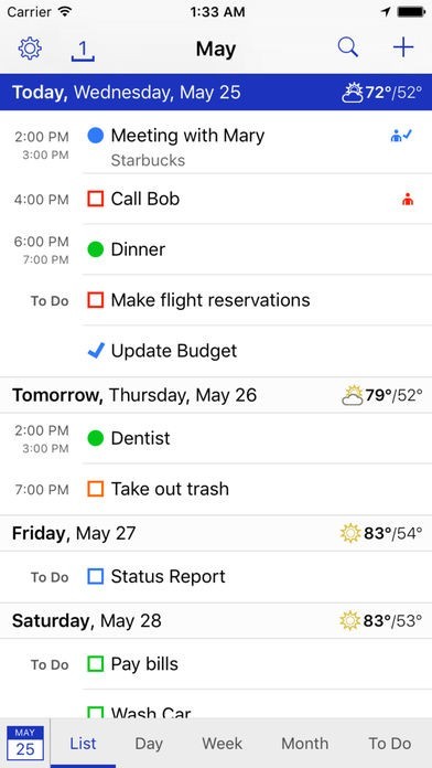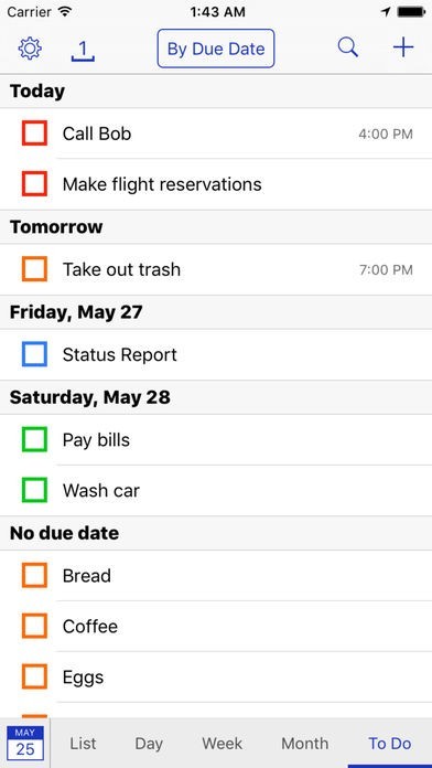 • To Dos can be sorted and filtered by date, priority, calendar or title.