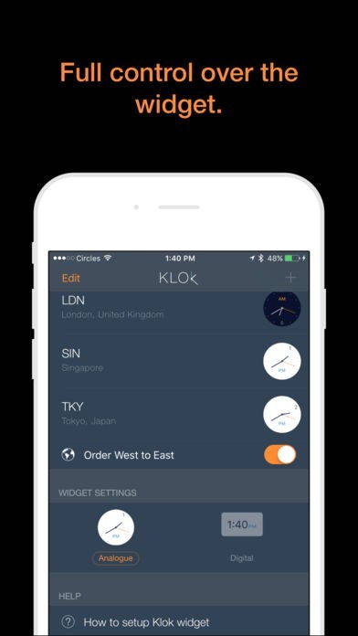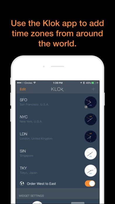 App Storeより引用Klokは、異なる時間帯にいるあなたの大切な人たちと時間を共にできる、世界時計変換ウィジェットです。