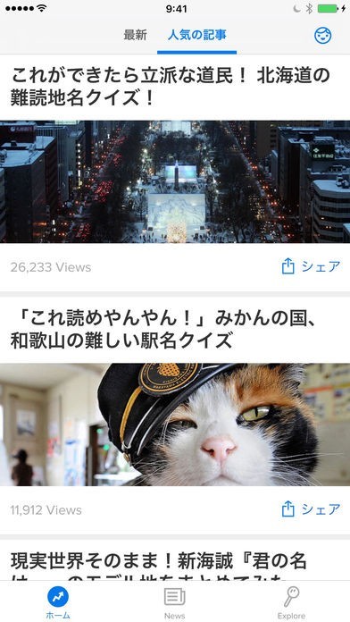 今、SNSでどんな話題がバズっている? 人気の話やニュースをはじめ、クイズやレシピ、ライフハックなど、SNSの皆が注目している話題を全部まとめてチェックできます。さらに、お気に入りのトピックをだけをチェックできるExploreタブや、誰よりも早く先取りできる「人気の記事」などの機能も。また、SNSでの話題づくりのために、Facebookやtwitterへの記事や写真のシェアも簡単に。こまめにチェックして話題豊富な人になりましょう。