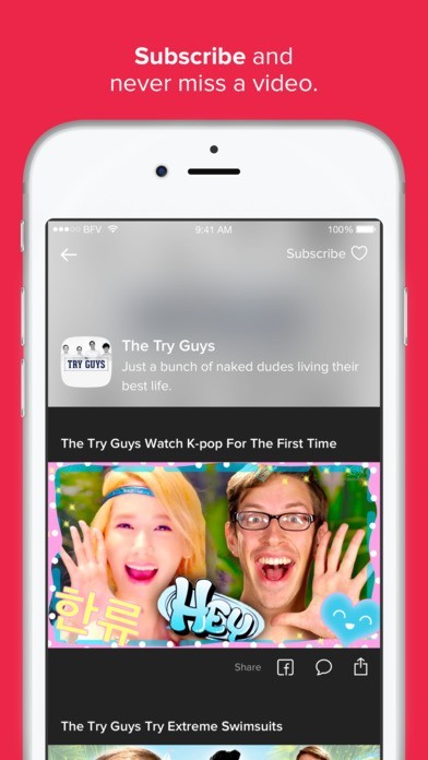 App Storeより引用Never miss a video from TASTY, THE TRY GUYS, BROKE, VIOLET, and more!
