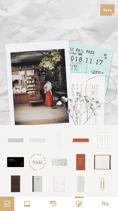 • STICKERS: Nichi provides multiple clip art images, tapes, sketch, etc.
