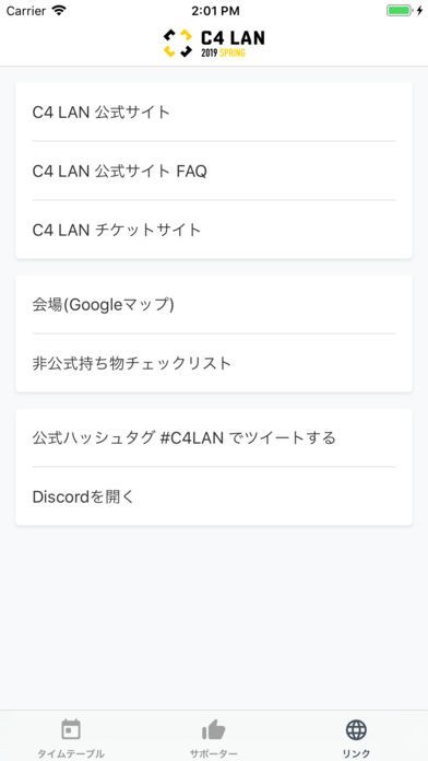 このC4 LAN公式アプリではイベント開催中のタイムテーブルとプッシュ通知機能を提供します。