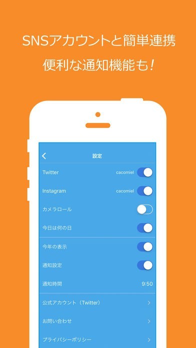 SNS連携機能は、過去の今日に投稿したものを振り返るので懐かしい投稿から思い出がよみがえる