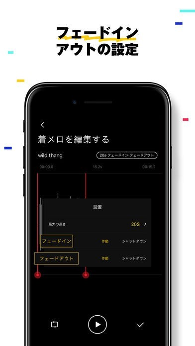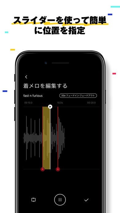 スライダー機能が付与されているので、着信音の位置を調節したい時や修正したい際に役立ちます。またテスト再生に対応しているので、制作した音楽の試聴も素早く行えます。