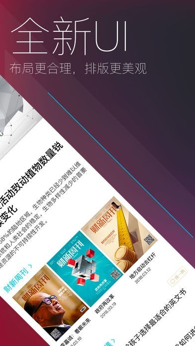 新版增加《财新周刊》版块,财新最优秀的调查记者深入一线,为您剖析解读热点、重点事件,让您足出不户把脉中国政治经济。