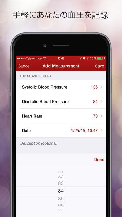 毎日の血圧を記録できるので良いです。記録した結果をグラフとして表示できるので見やすくて便利です。