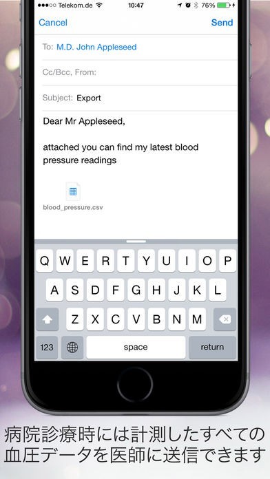エクスポート機能によって血圧値の経過を主治医に報告できる