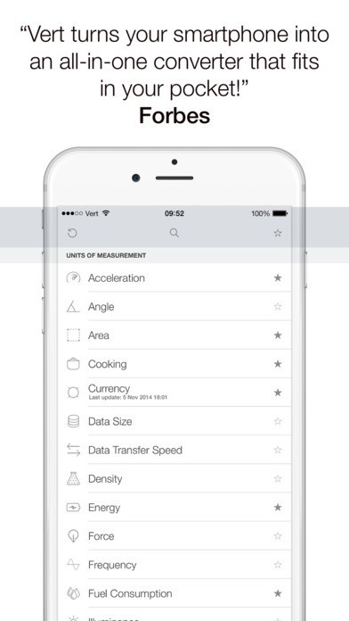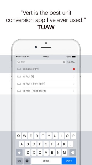 App Storeより引用You found it: your all-in-one converter! Vert offers the most beautiful way to make fast and 100% exact unit, currency and temperature conversions. Est. 2013; being featured as one of the best converters on the App Store ever since.