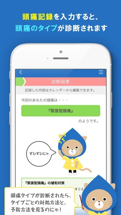 自分の頭痛傾向を知ることができます。頭痛傾向を知ることで予防や緩和対策をすることができます。