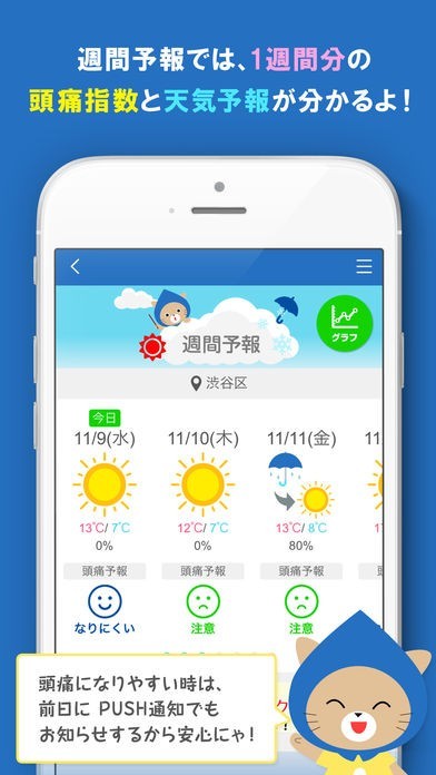 頭痛予報・天気予報~頭痛記録アプリ:ズキンちゃんのスクリーンショット