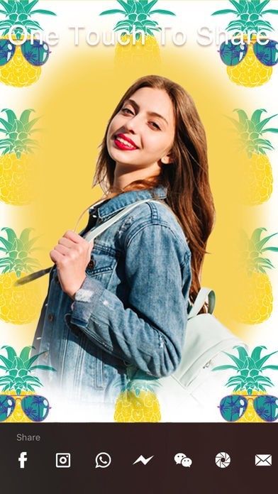 + 撮影した自撮り写真はFacebook、Twitter、Instagramで簡単にシェアできます。仲間とワイワイやりながら、ふと変顔写真対決がしたくなったとき、旅先で自分の姿を美しい異国の風景と一緒に残したいときなど...